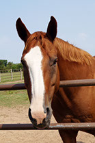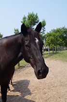 Mickey is a 12 year old bay paint gelding. Mickey did barrel racing before coming to SonRise. He decided he would much rather go slower and enjoy jumping rather than run barrels. Mickey does advanced beginning lessons. He loves going on trail rides and getting treats from his riders.