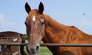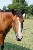 Jasper is a 21 year old Thoroughbred. On the flat Jasper is pretty lazy but when it is time to jump, he really starts paying attention. Jasper is used in beginner flat lessons and advanced beginner jumping lessons. He jumps up to 2’3” and has a sweet personality.